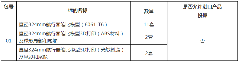 项目名称:清华大学直径324mm航行器缩比模型采购项目